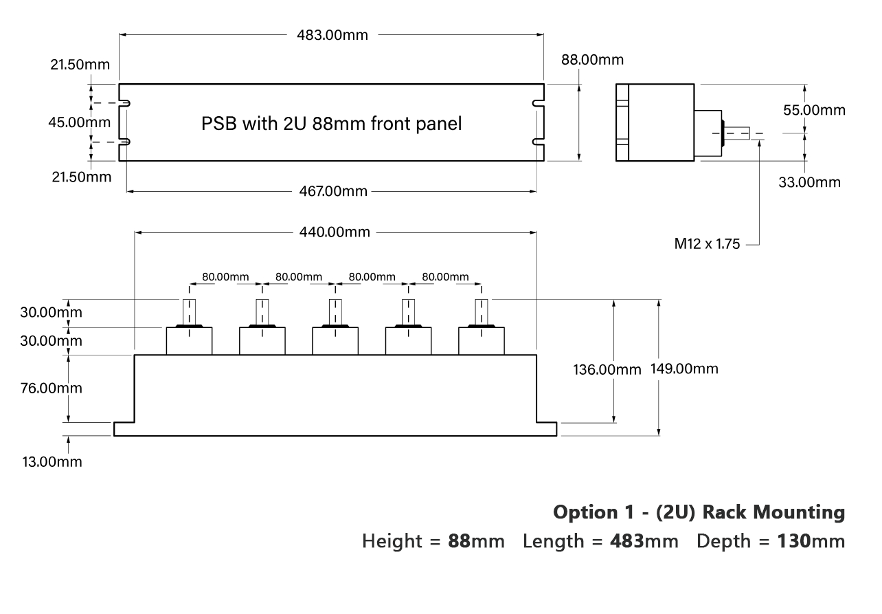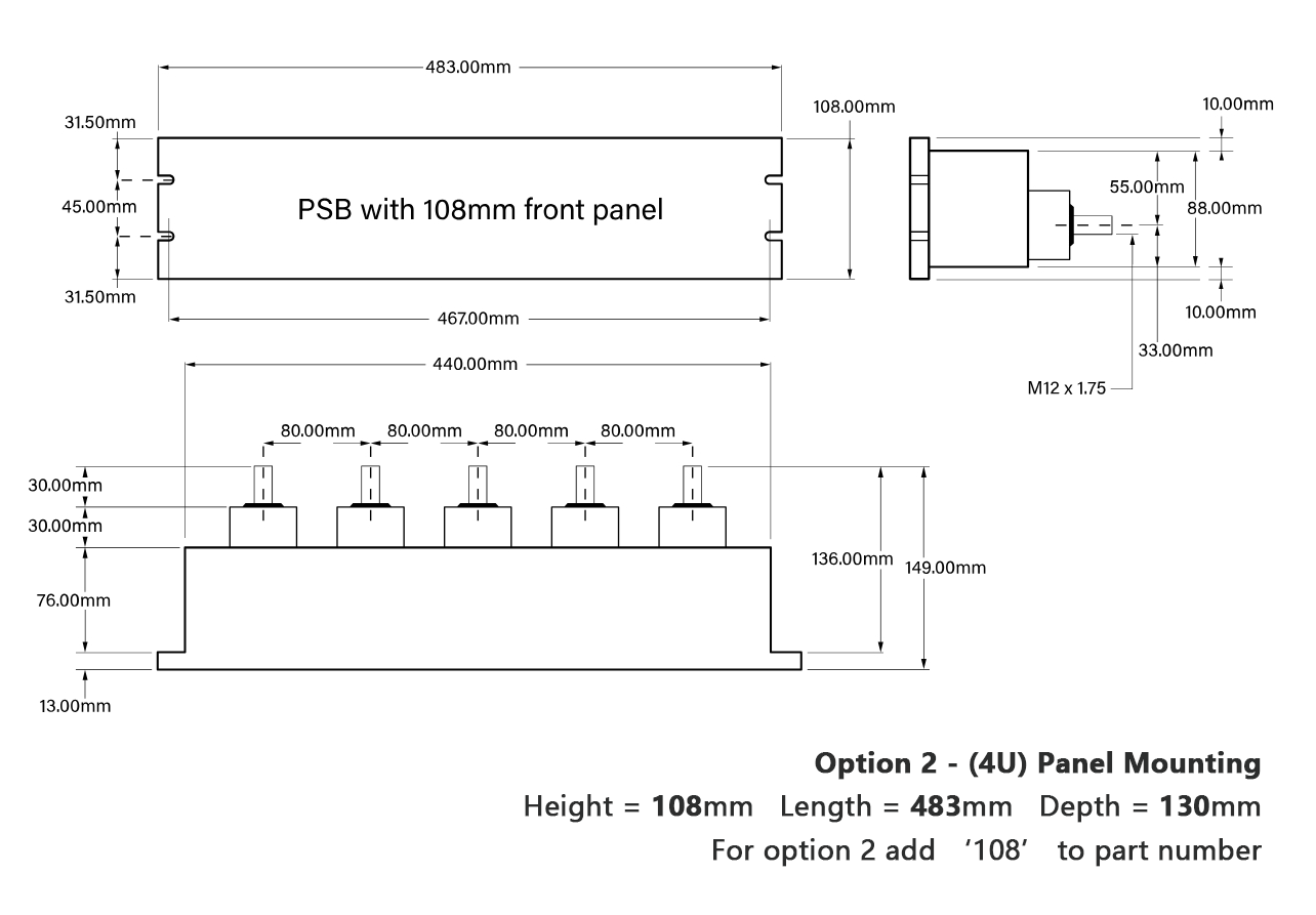 Powersafe 顺序配电盒提供源极或漏极版本。提供 5 个端口或 4 个端口(无中性线)。或者,向我们询问有关虚拟插头的信息,以暂时将 5 端口盒转换为 4 端口盒。直前面板有两种面板尺寸,88 毫米 (2U) 和 108 毫米 (4U)。